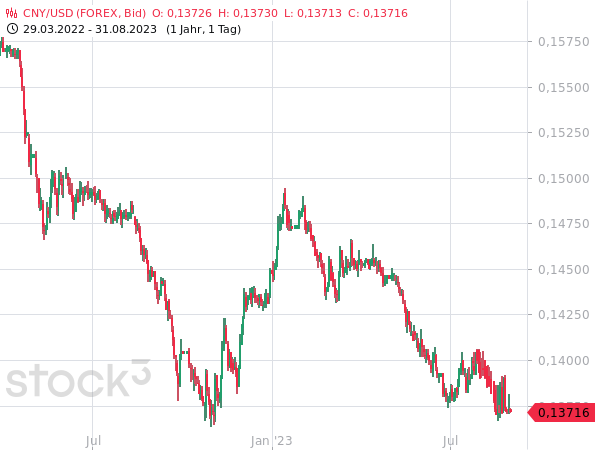Hinzu kam aber bereits vorgestern die Meldung, dass der strauchelnde chinesische Immobilienkonzern Country Garden vor einem Zahlungsausfall bei einigen Anleihen warnt. Zeitgleich gab das Unternehmen einen Verlust von 48,9 Milliarden Yuan (umgerechnet rund 6,1 Milliarden Euro) im 1. Halbjahr 2023 bekannt. Das Minus fiel damit nicht ganz so hoch aus wie befürchtet – im Vorfeld hatte Country Garden vor einem Fehlbetrag von bis zu 55 Milliarden Yuan gewarnt. Der Verlust war aber dennoch mehr als 7 Mal so groß wie die 6,7 Milliarden Yuan im 2. Halbjahr 2022.