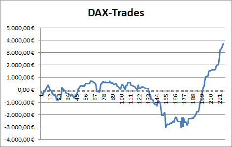 Die Gewinn-Serie, über die ich bereits am 15. August berichtet hatte, wurde also fortgesetzt. Und so hat die Performance, die wir mit Trades auf den DAX erzielt haben, ein neues Hoch erreicht.