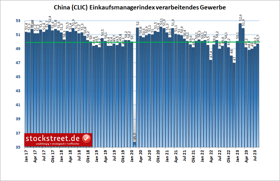 Anleger mussten gestern wieder eine ganze Reihe negativer Nachrichten verdauen. Es begann mit den aktuellen Einkaufsmanagerdaten aus China. Diese zeigen, dass das verarbeitende Gewerbe des Landes im August den 5. Monat in Folge geschrumpft ist. Der entsprechende Index legte zwar von 49,3 auf 49,7 Punkte zu, er blieb damit aber unterhalb der Schwelle von 50, ab der Wachstum signalisiert wird.