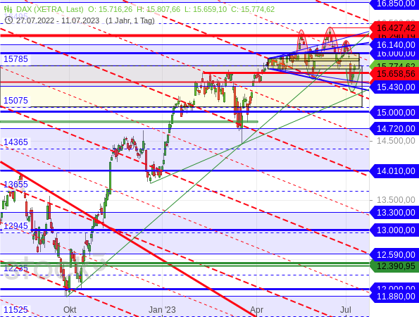 Durch dieses vollkommen trendlose und wirre Kursverhalten, mit vielen Fehlsignalen und plötzlichen Richtungswechseln, ist der DAX derzeit charttechnisch äußerst schwer einzuschätzen.