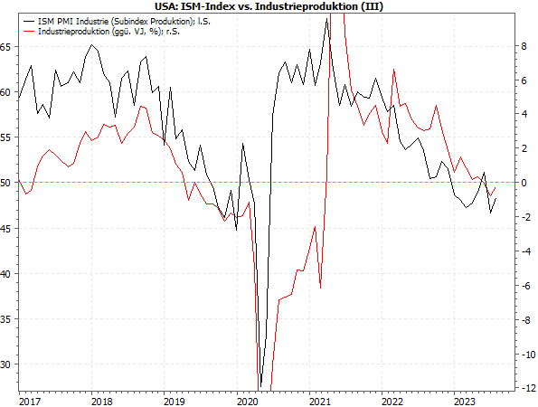 Wenn man ISM-Index und Industrieproduktion vergleicht