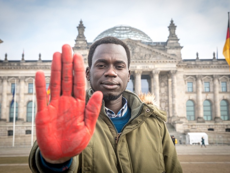 "Ich weiß aus eigener Erfahrung, wie wichtig psychologische Hilfe, Sicherheit und Bildung für ehemalige Kindersoldatinnen und -soldaten ist", sagt Innocent Opwonya, der als 10-Jähriger von einer bewaffneten Gruppe, der Lord's Resistance Army, in Uganda entführt und gezwungen wurde, Kindersoldat zu sein. Nach mehreren Monaten konnte er fliehen. "Nach meiner Flucht hat mich die Unterstützung von internationalen Hilfsorganisationen in Uganda gerettet, ich hatte großes Glück und bin dafür sehr dankbar. Jetzt setze ich mich für Kinder in Kriegsgebieten ein. Ich appelliere mit meiner roten Hand an jeden Einzelnen und an die Bundesregierung: Lassen Sie diese Kinder nicht allein, unterstützen Sie sie vor Ort und wenn sie in Deutschland Zuflucht suchen und setzen Sie sich für die friedliche Lösung bewaffneter Konflikte ein."