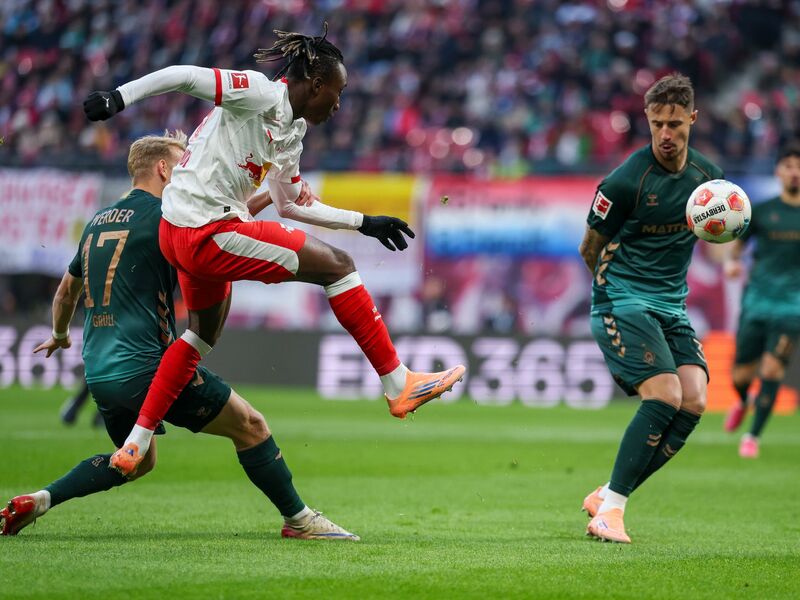 Nach dem Wechsel musste sich erstmals Peter Gulacsi strecken nach einem Schuss von Puertas (51.) aufs kurze Eck. Plötzlich war Werder da. Als Jens Stage steil geschickt wurde und direkt auf das RB-Tor zulief, packte Yan Diomande (59.) im Strafraum die perfekte Grätsche aus und rettete. Sekunden später kratzte Marco Grüll für Bremen den Ball von Baumgartner von der Linie.