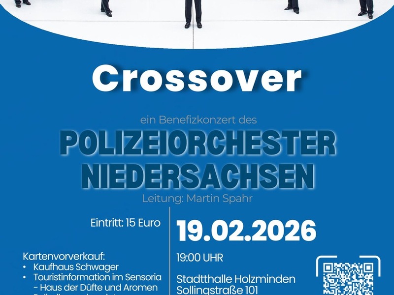 09.12.2025 - 09:54:03Benefizkonzert des Polizeiorchesters Niedersachsen in der Stadthalle Holzminden. Holzminden - Am Donnerstag, 19. Februar 2026, lädt das Polizeiorchester Niedersachsen um 19:00 Uhr erneut zu einem Benefizkonzert in die Stadthalle Holzminden ein. Das Orchester ist seit vielen Jahren ein gern gesehener Gast in Holzminden und begeistert das Publikum mit seinen abwechslungsreichen Programmen.
