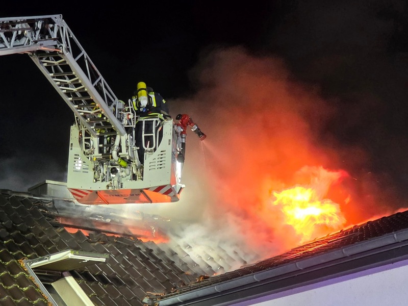 01.01.2026 - 05:22:40FW Celle: Dachstuhlbrand in Groß Hehlen - Einsatzende (Gesamtbericht). Bei Eintreffen der Feuerwehr schlugen bereits Flammen aus dem Dachstuhl eines Einfamilienhauses mit Praxisräumen im Erdgeschoss. Personen befanden sich nicht mehr im Gebäude. Es wurden keine Personen verletzt.