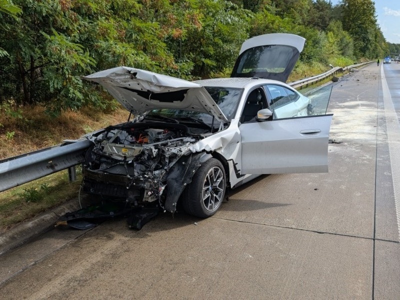 12.09.2025 - 08:56:57Bei Starkregen viel zu schnell unterwegs - Verkehrsunfall mit hohem Sachschaden (Foto im Anhang) ++++ Verkehrsunfall zwischen Pkw und E-Scooter. Am Donnerstag (10.09.2025) gegen 13:40 Uhr verunfallte eine 49-jährige Hagenerin mit ihrem PKW BMW I4 auf der Autobahn 27 in Fahrtrichtung Cuxhaven. Da Sie bei Starkregen viel zu schnell unterwegs war, verlor Sie die Kontrolle über den Pkw und kollidierte mit Mittel- und Außenschutzplanke. Die Alleinbeteiligte verletzte sich leicht. Der stark beschädigte PKW musste abgeschleppt werden. Der Gesamtschaden wird auf über 50.000 Euro geschätzt.