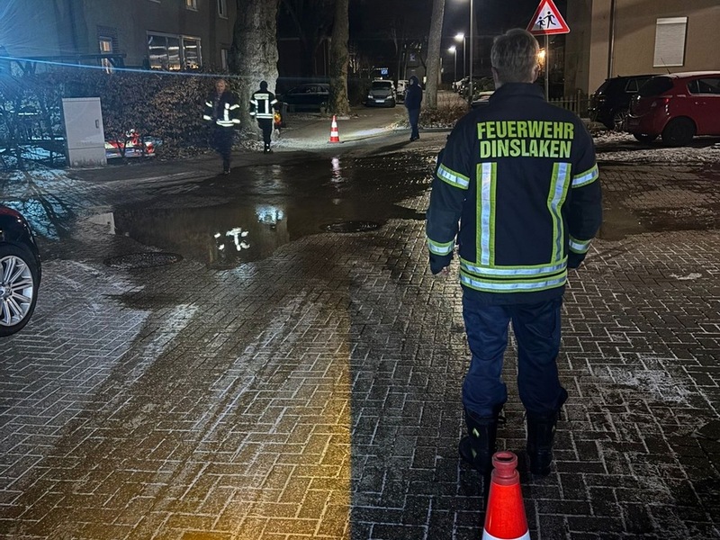 Dinslaken - Am gestrigen Abend gegen 21 Uhr kam es an der Ecke Bergmannstraße / Steinstraße zu einem Wasserrohrbruch. Aus einer unterirdischen Leitung trat plötzlich Wasser aus und sprudelte an die Oberfläche.Die Feuerwehr sperrte den betroffenen Bereich umgehend ab und sicherte die Einsatzstelle. Anschließend wurden die Stadtwerke Dinslaken alarmiert, die die weiteren Maßnahmen übernahmen. Ziel war es, den Wasseraustritt zu stoppen und den Schaden an der Leitung zu lokalisieren. Zur Ursache des Rohrbruchs lagen am Abend noch keine Informationen vor. Auch über mögliche Einschränkungen für Anwohner oder den Verkehr konnte zunächst keine abschließende Auskunft gegeben werden. Die Stadtwerke setzten ihre Arbeiten noch am Abend fort.