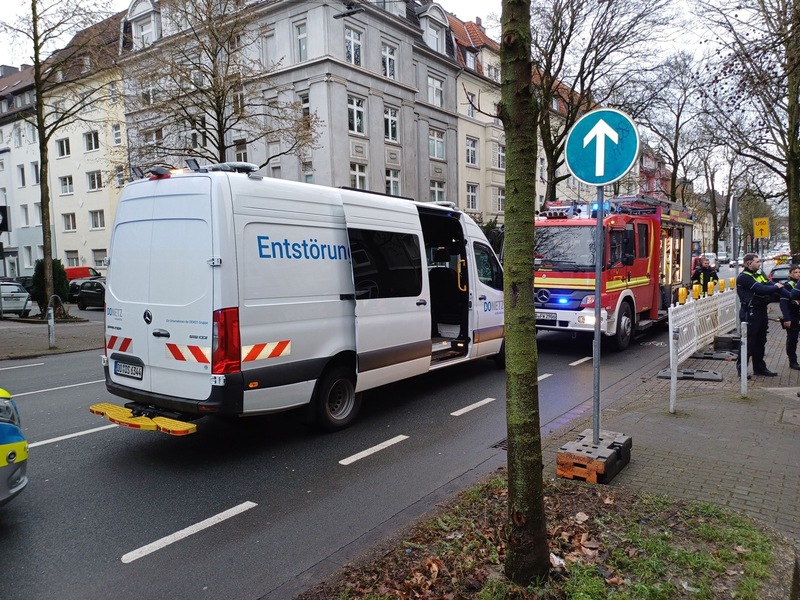 Dortmund - Am 14.01.2026 gegen 15:00 Uhr wurde die Feuerwehr zu einer Gasausströmung auf der Essenerstraße im Stadtteil Dortmund-Mitte alarmiert. Bei Tiefbauarbeiten hatte dort ein Bagger eine Erdgasleitung beschädigt. Die eintreffende Feuerwehr sperrte den betroffenen Bereich ab und lenkte mittels Hochleistungslüfter gezielt das ausströmende Erdgas von der Häuserfront weg. Die DSW21 begab sich unmittelbar an die Reparatur der Erdgasleitung. Durch zügiges Eingreifen aller Beteiligten kam es zu keinen weiteren Schäden. Die Essenerstraße musste für einige Zeit durch die Polizei abgesperrt werden, hierdurch kam es zu Verkehrsbehinderungen. Die Feuerwehr konnte die Anzahl der alarmierten Einsatzkräfte zeitnah reduzieren. Es wurden insgesamt ca. 50 Einsatzkräfte der Berufsfeuerwehr sowie der Freiwilligen Feuerwehr zu dem Einsatz alarmiert. Die Einsatzmaßnahmen an der Einsatzstelle wurden abschließend durch den Löschzug der Feuerwache 1 ausgeführt.