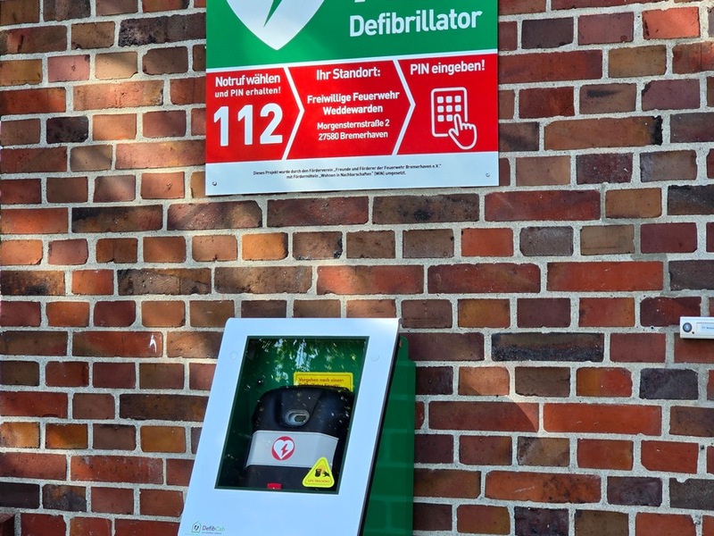 29.09.2025 - 11:00:57FW Bremerhaven: Öffentlicher AED bei der Freiwilligen Feuerwehr Weddewarden in Betrieb genommen. Bremerhaven - Am Feuerwehrgerätehaus der Freiwilligen Feuerwehr Weddewarden, Morgensternstraße 2, steht seit dem 26. September 2025 ein automatisierter externer Defibrillator (AED) rund um die Uhr für die Öffentlichkeit bereit. Möglich gemacht wurde das Vorhaben durch den Förderverein "Freunde und Förderer der Feuerwehr Bremerhaven e. V." mit finanzieller Unterstützung aus dem Programm "Wohnen in Nachbarschaften (WiN)".