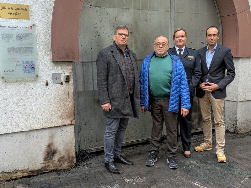 15.01.2026 - 15:39:35Nachdem am Dienstagabend (13.1.2025) ein Mann eine versuchte schwere Brandstiftung vor der Gießener Synagoge beging, kamen gestern Polizeipräsident Torsten Krückemeier, die Leiterin der mittelhessischen Abteilung Einsatz, Leitende Kriminaldirektorin Carina Lerch, Oberbürgermeister Frank-Tilo Becher und der Vorsitzende der jüdischen Gemeinde Gießen, Herr Dow Aviv, zusammen. Das Treffen in den Räumen der jüdischen Gemeinde diente neben dem Informationsaustausch vor allem einem weiteren Zweck: dem Ausdruck der engen Verbundenheit.