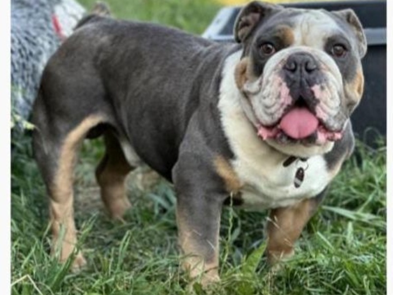 30.10.2025 - 13:45:21LPI-NDH: Hund entlaufen - Zeugenaufruf. Es handelt sich bei "Günther" um eine englische Bulldogge der Farbe blue-tricolor.