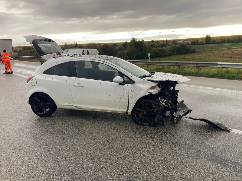 23.10.2025 - 10:57:51Polizeiautobahnstation Ruchheim - Alleinunfall bei Aquaplaning auf der A6, Höhe Laumersheim. Polizei und Rettungsdienst trafen kurze Zeit später an der Unfallstelle ein.