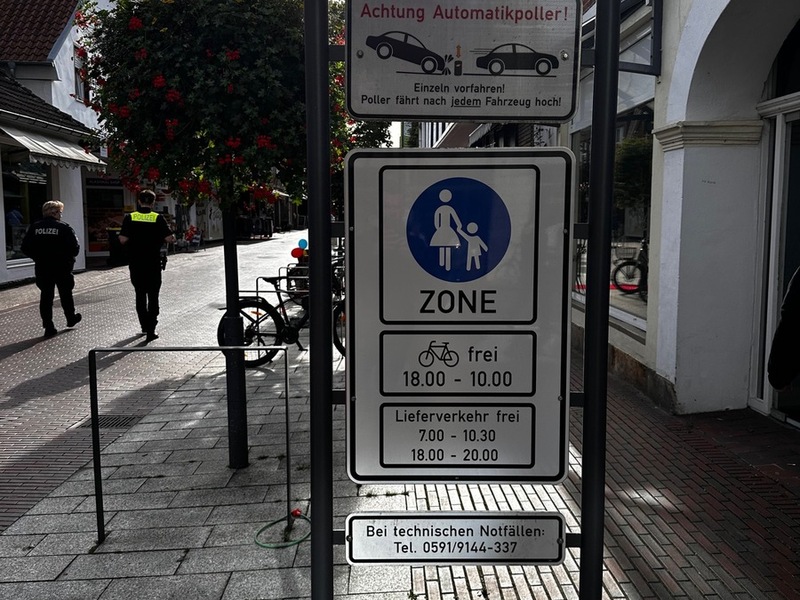25.09.2025 - 13:00:41Lingen - Radfahren in der Lingener Innenstadt - Polizei kontrolliert und appelliert. Ziel dieser Regelung ist es, die Sicherheit der vielen Fußgängerinnen und Fußgänger zu gewährleisten.