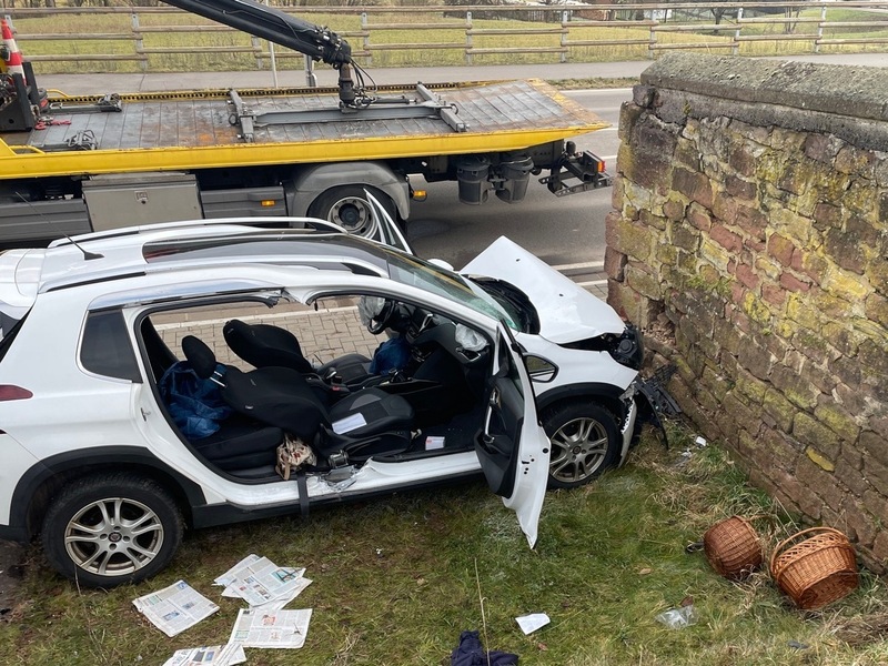 Lohnsfeld (Donnersbergkreis) - Am Donnerstagmittag kam es auf der L401 zu einem Alleinunfall, bei dem zwei Personen schwer verletzt wurden. Eine 76-jährige Autofahrerin befuhr die Landstraße in Richtung Wartenberg-Rohrbach. Im Bereich der Pulvermühle kam sie aufgrund ungeklärter Ursache nach rechts von der Fahrbahn ab, überfuhr ein Schild und krachte schließlich ungebremst frontal gegen eine Steinmauer. Die Unfallverursacherin und ihr 80-jähriger Beifahrer wurden schwer verletzt und mussten durch die Feuerwehr aus dem Fahrzeug befreit werden. Sie wurden durch einen Rettungshubschrauber und den Rettungsdienst in ein Krankenhaus gebracht. An dem Fahrzeug entstand Totalschaden in Höhe von rund 20.000 Euro. Nach Abstimmung mit der Staatsanwaltschaft wurde das Fahrzeug sichergestellt und ein Gutachter mit der Klärung der Unfallursache beauftragt. Auf richterliche Anordnung wurde der Fahrerin eine Blutprobe entnommen. An dem Einsatz waren ein Rettungshubschrauber, ein Notarzt, zwei Fahrzeuge des Rettungsdienstes, die Feuerwehr sowie die Polizei beteiligt. |ank