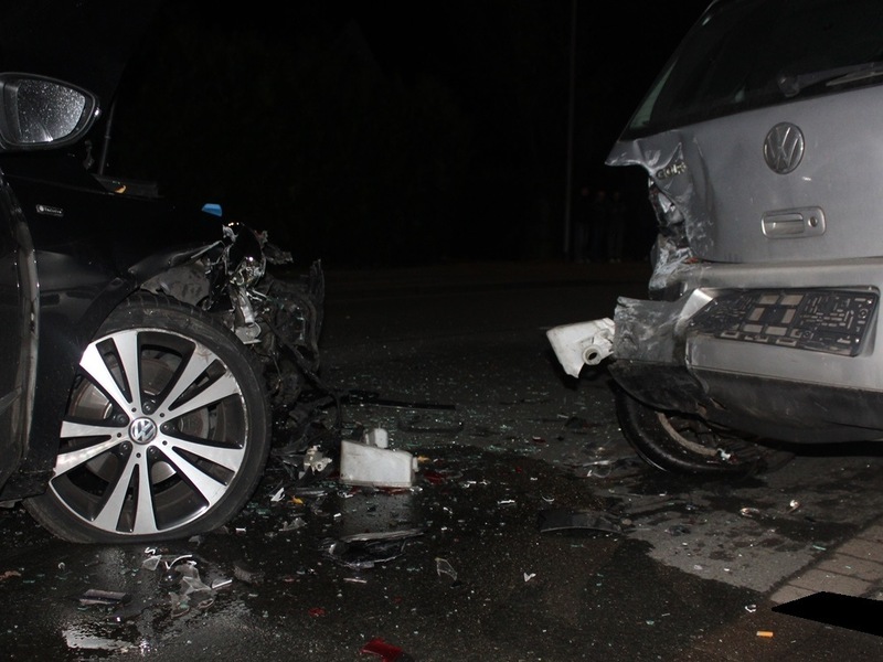 Den Erkenntnissen zufolge befuhr ein 32-Jähriger gegen 23:45 Uhr mit seinem VW Passat die Marienstraße in Richtung Petershagen. Beim Vorbeifahren an einem rechtsseitig parkenden Pkw, kam dem Mann eine Frau (37) mit einem BMW entgegen. Als der Mann nach rechts auswich um einen Zusammenstoß mit dem entgegenkommenden Pkw zu vermeiden, kollidierte der Kraftwagen mit dem stehenden VW. Durch die Wucht des Aufpralls wurde der Geparkte wiederum gegen einen weiteren am Fahrbahnrand abgestellten Mini geschoben. Auch das entgegenkommende Auto wurde durch herumfliegende Fahrzeugteile in Mitleidenschaft gezogen. Drei der vier Wagen waren schließlich nicht mehr fahrbereit.
