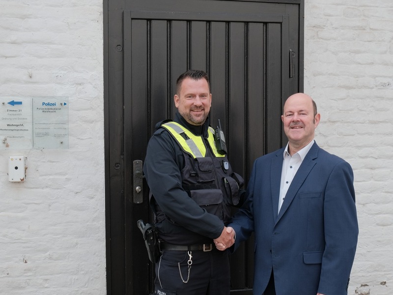 10.10.2025 - 13:00:10Offizielle Begrüßung des neuen Bezirksdienstbeamten. Waldfeucht - Am Donnerstag, 9. Oktober, begrüßte Bürgermeister Heinz-Josef-Schrammen den neuen Bezirksdienstbeamten der Kreispolizeibehörde Heinsberg, Frank Klein. Seit Norbert Keimes Ende August in den wohlverdienten Ruhestand verabschiedet wurde, hatte Frank Klein seine Aufgaben in der Gemeinde Waldfeucht übernommen. Der 49-Jährige ist in Waldfeucht aufgewachsen und wohnt nun mit seiner Frau und zwei Kindern ebenfalls dort. Er ist auch privat eng mit der Gemeinde verbunden und im Vereinswesen aktiv. Frank Klein ist seit 25 Jahren im Polizeidienst tätig und konnte in dieser Zeit vielfältige Erfahrungen in unterschiedlichen Bereichen der Polizei sammeln. Nun freut er sich auf seine neue Aufgabe und darauf, mit den Menschen vor Ort ins Gespräch zu kommen. "Zögern Sie nicht, mich bei Fragen, Problemen oder anderen Anliegen direkt anzusprechen. Ich bin im Bereich unterwegs oder in meinem Büro in der Gemeindeverwaltung erreichbar." Bürgermeister Heinz-Josef-Schrammen freut sich darüber, wieder einen engagierten und in der Gemeinde verwurzelten Bezirksdienstbeamten für die Gemeinde Waldfeucht begrüßen zu dürfen. "Die gute Zusammenarbeit mit Norbert Keimes können wir mit Frank Klein so fortsetzen. Wer hier wohnt und die Menschen kennt, dem liegt die Sicherheit in unserer Gemeinde am Herzen."
