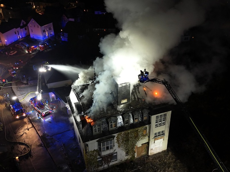 31.12.2025 - 09:13:43FF Olsberg: Feuer zerstört Dachstuhl des ehemaligen Krankenhauses in Olsberg. Bei Eintreffen der ersten Einsatzkräfte stand der Dachstuhl des ehemaligen Krankenhauses in Vollbrand. Aufgrund der alten, leerstehenden Bausubstanz entschied man sich zum Schutz der Einsatzkräfte, den Löschangriff ausschließlich von außen durchzuführen. Zur Unterstützung hierfür wurde die Drehleiter des Löschzuges Brilon als zweite Drehleiter nachgefordert. Bei Temperaturen unter dem Gefrierpunkt eine Herausforderung für die insgesamt etwa 90 Einsatzkräfte vor Ort. Der Bauhof der Stadt Olsberg rückte mit einem Streufahrzeug an, um die Einsatzstelle von dem gefrierenden Löschwasser zu befreien. Die Unterhalb des Krankenhauses liegende Rettungswache des HSK konnte zum Aufwärmen für die Einsatzkräfte genutzt werden. Hier wurden die Helfer mit heißem Kaffee versorgt. Herzlichen Dank dafür! Neben der Feuerwehr und dem Bauhof waren der Rettungsdienst, die Polizei, die Energieversorger, der Bürgermeister und die IUK Einheit vor Ort. Der Bereich um die Einsatzstelle war komplett gesperrt. Die letzten Einsatzkräfte der Feuerwehr, die mit 12 Fahrzeugen vor Ort war, rückten gegen 02:30 Uhr ein. Verletzt wurde Niemand. Über die Brandursache und Schadenshöhe liegen der Feuerwehr keine Informationen vor, hierzu wird die Kriminalpolizei die Ermittlungen aufnehmen.