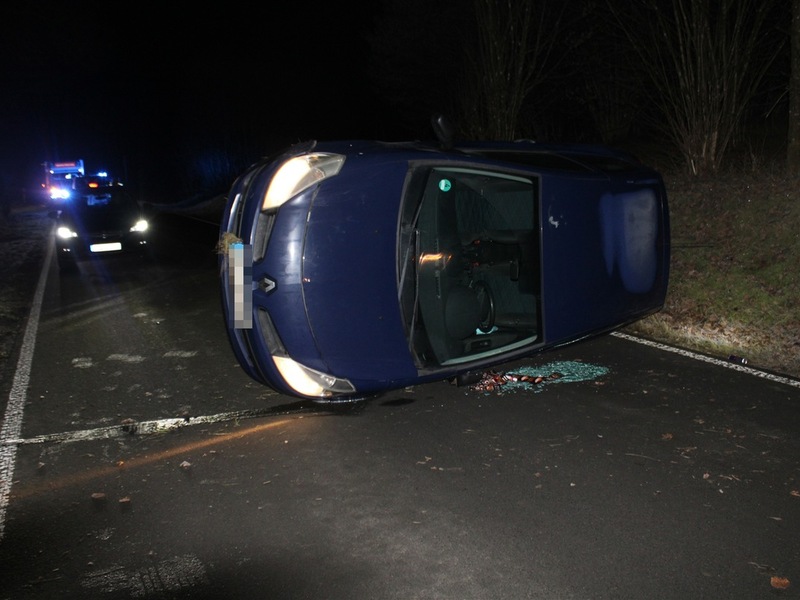 Ausgangs einer Rechtskurve verlor der Mann aufgrund Fahrbahnglätte die Kontrolle über seinen Wagen. Er kam anschließend nach links von der Fahrbahn ab und fuhr in den steilen Böschungsbereich. Hier kippte der Renault auf die Fahrerseite und rutschte noch mehrere Meter auf der Fahrbahn weiter. Der 41-Jährige konnte sich selbständig aus dem Auto befreien, musste aber anschließend verletzt mit dem Rettungswagen in ein Krankenhaus gebracht werden. Der Sachschaden dürfte bei mindestens 5.000 Euro liegen. Der Renault musste in der Folge durch ein Abschleppunternehmen abtransportiert werden. Die Unfallaufnahme vor Ort ergab, dass der Wagen mit intakten Winterreifen ausgerüstet war. Das Verkehrskommissariat hat die weitere Sachbearbeitung übernommen.
