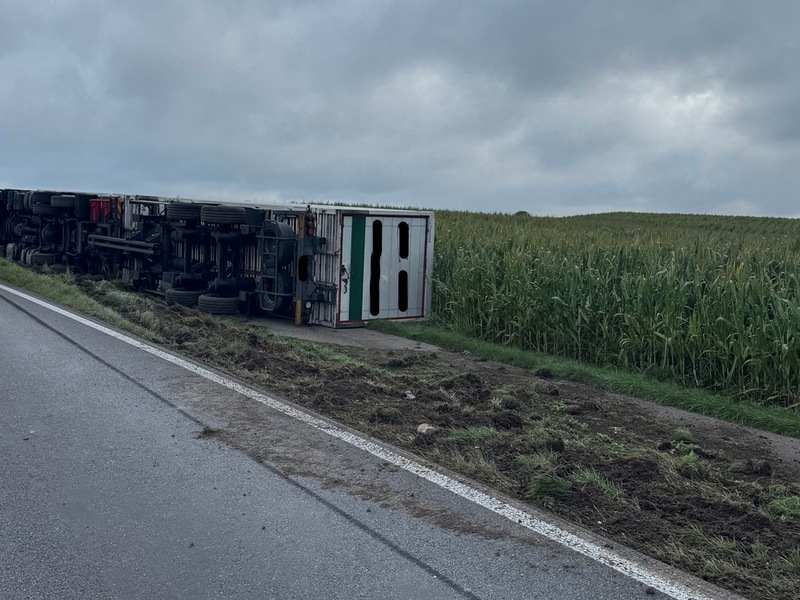 11.09.2025 - 08:35:43(UL) Obermachtal/B311 - Laster kippt um / Eine stundenlange Sperrung der B311 bei Obermarchtal-Datthausen zog ein verunfallter Lkw am Mittwoch nach sich. Schaden mindestens 150.000 Euro.. Nach Datthausen und kurz vor der Kreuzung nach Reutlingendorf kam das Lkw-Gespann mit polnischer Zulassung aus bisher unbekannter Ursache nach rechts von der Straße ab. Der Lkw samt Anhänger kippte nach rechts auf die Seite und kam auf einem Rad- und Feldweg zum Liegen. Das Zugfahrzeug und der Anhänger waren mit rund 10 Tonnen Elektroartikel (Fernseher etc.) beladen. Bei dem Unfall verletzte sich weder der polnische Fahrer noch sein Beifahrer. Sie erlitten einen leichten Schock. Rettungskräfte waren vor Ort, eine Mitnahme ins Krankenhaus war nicht erforderlich. Zum Glück herrschte zum Unfallzeitpunkt kein Gegenverkehr auch kein Verkehr auf dem Feldweg, so dass keine weiteren Fahrzeuge bei dem Unfall beteiligt waren. Im Rahmen der Unfallaufnahme stellte sich heraus, dass der Tank des Lkw aufgerissen wurde und rund 50 Liter Dieselkraftstoff ausgelaufen waren. Polizei und Straßenmeisterei sperrten die Straße komplett und leiteten den Verkehr um. Die Polizei verständigte auch das Landratsamt, damit die Spezialisten der Umweltbehörde die notwendigen Maßnahmen zum Umweltschutz einleiten konnten. Verunreinigtes Erdreich wird im Laufe des Vormittags (11.9.) mit Hilfe eines Baggers durch eine Spezialfirma entfernt. Verkehrsbehinderungen dürften nicht zu erwarten sein. Ersten Erkenntnissen zufolge kam es zu keinen Umweltgefährdungen. Durch die aufwendigen Bergemaßnahmen mit einem Schwerlastkran war die B311 bis etwa 23.30 Uhr voll gesperrt. Die Straßenmeisterei leitete den Verkehr um. An dem Lkw und Anhänger entstand ein Sachschaden von mindestens 150.000 Euro. Wie hoch der Schaden an der Ladung und auch der Flurschaden ist, muss die Polizei noch ermitteln.