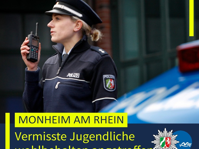 27.11.2025 - 20:53:29Vermisste Jugendliche wohlbehalten angetroffen - 2511122. Monheim am Rhein - Wie die Kreispolizeibehörde Mettmann berichtete, suchte sie in Monheim am Rhein und Umgebung unter Einbindung vieler Kräfte nach einem seit Mittwoch (26. November 2025) vermissten 14 Jahre alten Mädchen.