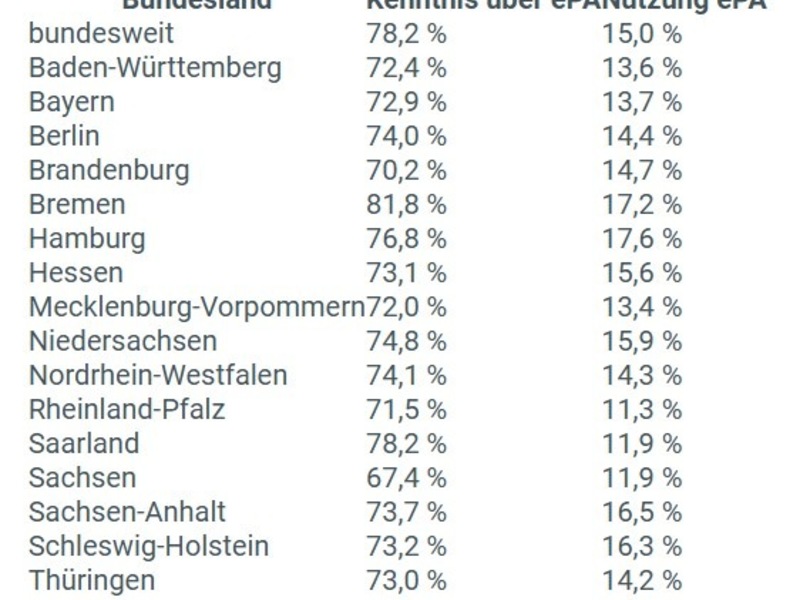 Sie finden die Tabelle mit den Zahlen der Bundesländer im Anhang.