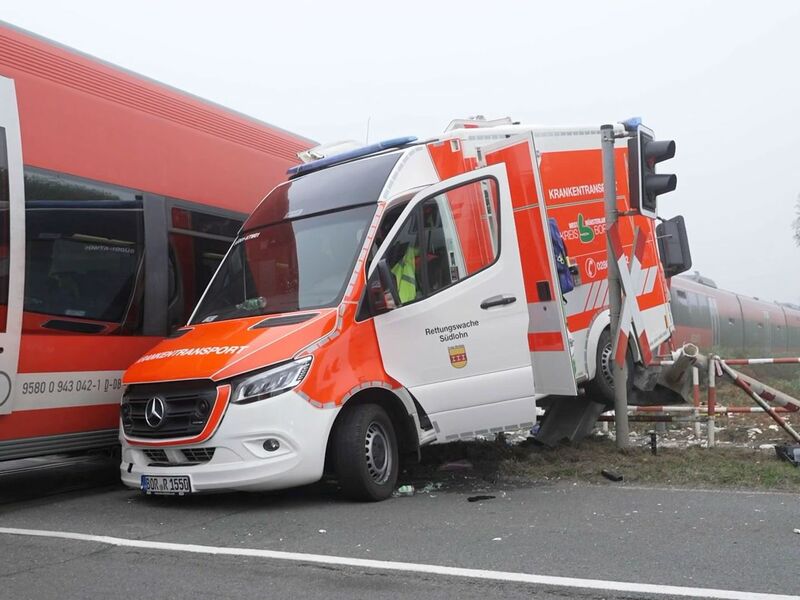 Der zerstörte Krankenwagen wurde am Vormittag geborgen. Die rund 100 Fahrgäste wurden mit Bussen zur nächsten Haltestelle gebracht, wie ein Sprecher der Deutschen Bahn sagte. Zwischenzeitlich wurde ein Schienenersatzverkehr eingerichtet. Inzwischen ist die Bahnstrecke wieder frei.