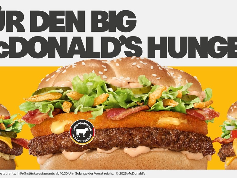 19.01.2026 - 12:28:42Ein langer Tag, kaum Zeit zum Durchatmen und dann sitzt man da - hungrig, mit großen Erwartungen, aber ohne Aussicht darauf, satt zu werden. Entweder weil ambitionierte Kochvorhaben voll daneben gingen oder man einfach zu spät ans Buffet gekommen ist - fast jeder kennt dann diesen einen Gedanken: Wir hätten zu Mecces gehen sollen! Für genau diese Situationen startet McDonald's Deutschland jetzt eine neue Plattform. Im Mittelpunkt stehen große Burger für den großen Hunger.