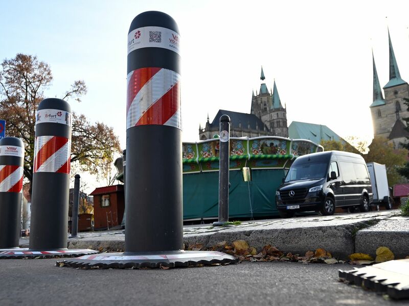 • Die deutschen Weihnachtsmärkte werden wie hier in Erfurt mit Pollern und anderen Sperren gesichert.  - Foto: Martin Schutt/dpa