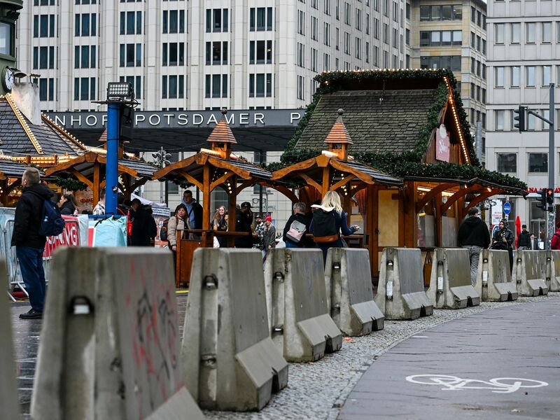 • In Berlin und den anderen deutschen Städten werden die Weihnachtsmärkte mit Sperrelementen gesichert.  - Foto: Jens Kalaene/dpa