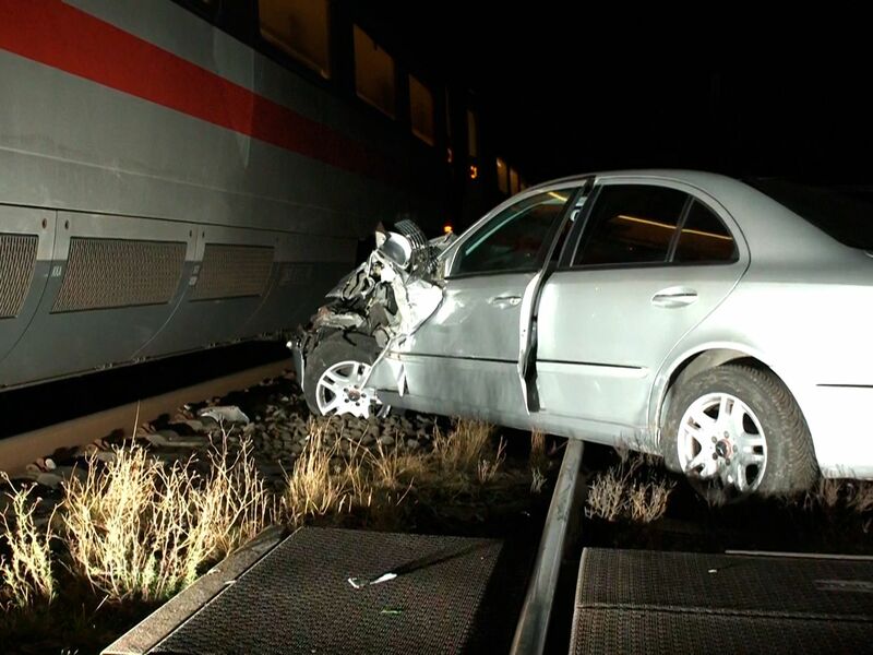 Der Wagen eines 75-Jährigen wird auf einem Bahnübergang von einem Zug erfasst.