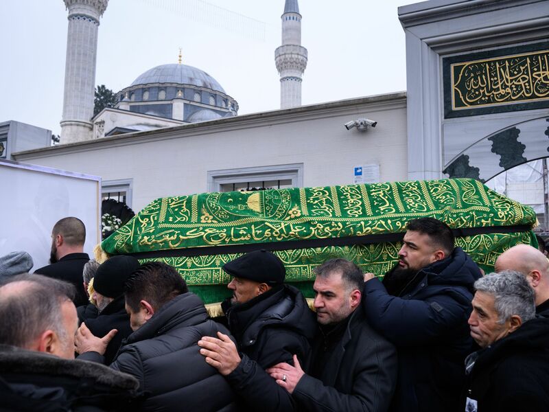 So kam es nach dem Ende des Trauergebets kurzfristig zu Behinderungen, als Hunderte Menschen aus der Moschee strömten. Gegen 13.30 Uhr trugen mehrere Männer den mit einem grünen Tuch mit goldenen Schriftzügen bedeckten Sarg zu einem Leichenwagen. An einem Fenster des Fahrzeuges war ein großes Foto des Toten zu sehen.