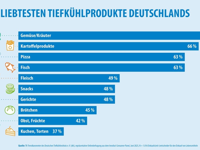 "Tiefkühlprodukte sind hoch relevant für eine leckere, frische und bezahlbare Lebensmittelversorgung", erklärt dti-Geschäftsführerin Eichner. "Sie sind dank der natürlichen Kraft der Kälte frischer als frisch und vor allem zeitsparend und unkompliziert zuzubereiten. Damit unterstützen sie die Menschen in ihrem modernen, beschäftigten Alltag, schenken Zeit für Gemeinschaft und unbeschwerten Genuss. Die Hersteller von Tiefkühlprodukten greifen aktuelle Trends auf und bieten aktuell zahlreiche neue Varianten ihrer heißgeliebten Tiefkühl-Spezialitäten. Viele werden ab dem 4. Oktober 2025 auf der Fachmesse Anuga Frozen Food in Köln präsentiert, der weltgrößten Tiefkühlmesse."