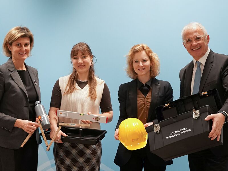 Die Ziele der Ministerin seien ambitioniert, erforderten vielfältiges Geschick und Ausdauer. Um die anstehenden Aufgaben gut bewältigen zu können, überreichte die Hochschule der Ministerin einen eigens gestalteten, symbolträchtigen "Hochschulpolitik-Werkzeugkasten".