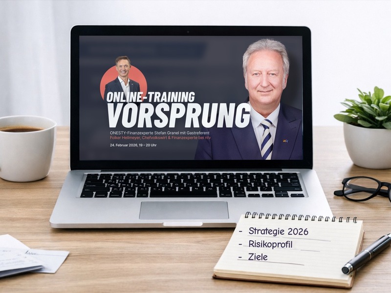 23.01.2026 - 09:10:00ONESTY-CEO Stefan Granel kündigt in diesem Zusammenhang das nächste Online-Training "VORSPRUNG" an. "Finanzbildung ist eine Schlüsselkompetenz, die Menschen befähigt, informierte Entscheidungen zu treffen - gerade in unsicheren Zeiten", sagt Granel. "Wir laden Verbraucher am 24. Februar von 19:00 bis 20:00 Uhr zum nächsten VORSPRUNG-Webinar ein und geben Antworten auf die Frage, welche Anlagestrategie 2026 sinnvoll ist. Mein Gast ist dieses Mal erneut Folker Hellmeyer, Chefvolkswirt und Finanzexperte bei ntv." Die Teilnahme ist kostenfrei.