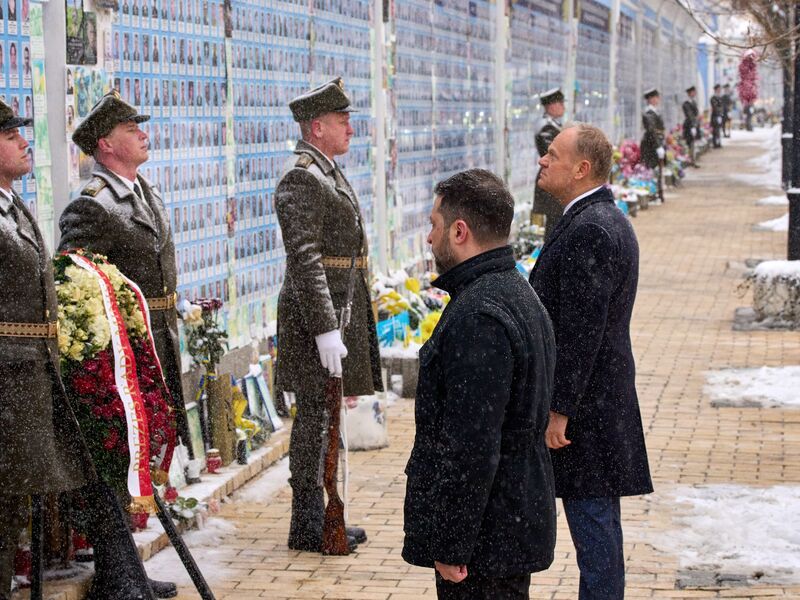 «Selbst wenn jemand unsere Gebiete als russisch anerkennt, wird das nichts bringen», kommentierte Selenskyj in Kiew. Denn nicht alle Staaten würden dies tun, und kein Verzicht sei gültig ohne seine Unterschrift als Präsident. «Deshalb gehören unsere Gebiete zu uns, auch wenn sie vorübergehend besetzt sind», sagte Selenskyj bei einer Pressekonferenz mit Polens Ministerpräsident Donald Tusk in Kiew. Selenskyj und Tusk vereinbarten, die Rüstungskooperation ihrer Länder zu verstärken.