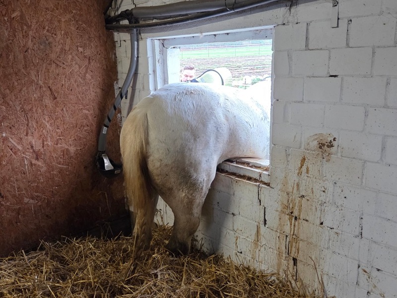 16.11.2025 - 15:48:51FW Datteln: Pferd Pirat versucht Flucht durch Stallfenster. So stand man vor Ort auch vor einer besonderer Herausforderung. Das Pferd "Pirat" hatte augenscheinlich versucht, die ärztlich angeordnete Boxenpflicht, durch einen Sprung aus dem Fenster zu beenden. Dabei blieb es mit den Hinterläufen hängen und brachte die Feuerwehr auf den Plan. In enger Zusammenarbeit mit dem Tierarzt wurde das Pferd zunächst mit B-Schläuchen und Trecker gesichert und dann in Narkose gelegt. Anschließend wurde das Tier mit vereinten Kräften im Geschirr gedreht und aus dem Fenster geschoben. Aufgrund der Vorerkrankung musste jede Bewegung des Tieres mit dem Tierarzt abgestimmt werden, um weitere Schäden zu vermeiden. Das ebenfalls alarmierte THW Datteln, welches mit schwerem Gerät die Fensteröffnung erweitern sollte falls der Versuch des Drehens scheitern sollte, brauchte nicht mehr eingreifen. Nach dem Ausschlafen der Narkose gab es eine Extrakuscheleinheit mit der Besitzerin.
