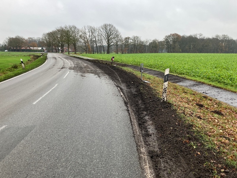 04.12.2025 - 12:06:15Einzelmeldung für den Landkreis Vechta. Cloppenburg/Vechta - Bakum - Verkehrsunfallflucht / Fahrbahn stark verschmutzt / Zeugenaufruf