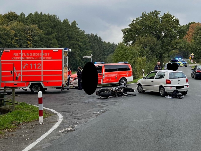 Der Biker stürzte und zog sich leichte Verletzungen zu. Nach einer Erstversorgung durch den Rettungsdienst wurde er ins Krankenhaus Lübbecke gebracht. Bei beiden Fahrzeugen entstanden erhebliche Schäden.
