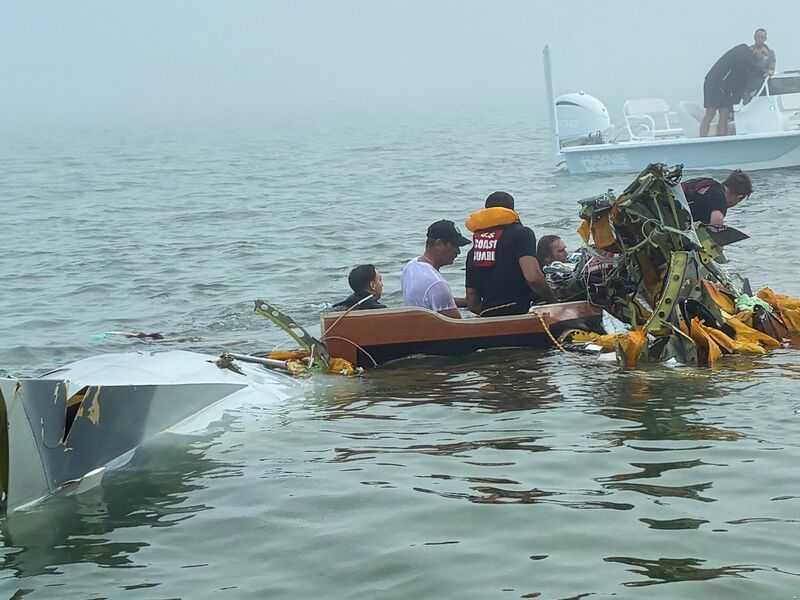 Fotos zeigten Trümmerteile der Maschine im Wasser sowie Rettungskräfte während des Einsatzes. US-Medien zufolge wollte die Maschine in dem nahe der Großstadt Houston gelegenen Galveston landen und stürzte kurz zuvor aus noch unbekannter Ursache ab. Am Absturzort herrschte Nebel, wie auf Fotos zu sehen war.